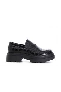 Mock croc print imitation leather moccasins with loop
