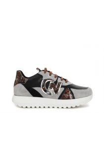Multi-material leather sneakers with side logo and another logo on the tongue