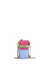 Mobile phone holder with multicoloured flap. cross-body bag with chain.