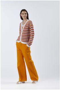 Multicoloured cardigan in cotton-blend yarn with crochet work. perfect basic garment for a 70s look. combine with a pair of flare jeans or a maxi skirt.