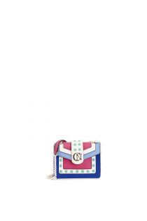 Multicoloured rigid shoulder bag with flap. gold cafènoir logo on flap. pyramid rivets and coloured chain.