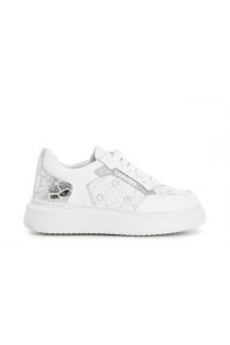 Multicoloured leather sneakers with micro-perforated detail and laser-etched cafènoir logo box sole stitched on upper.