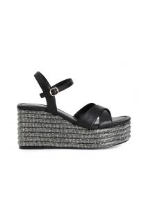 Sandals with crossover napa leather upper and ankle strap. wedge featuring rhinestone bands. the comfortable padded genuine leather insole makes the shoe comfortable even after several hours of use. the heel is 70mm high the platform is 35mm.
