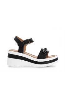 napa leather wedge sandals with rhinestone accessory black