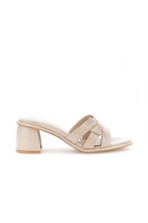 naplak-effect sandals with decorative stitching beige