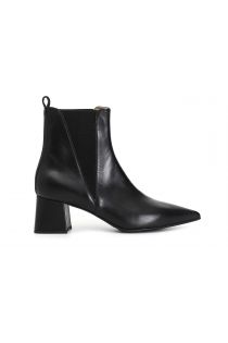 Women's nappa leather ankle boot with a 50 mm high heel and side stretch panel. the insole is leather.