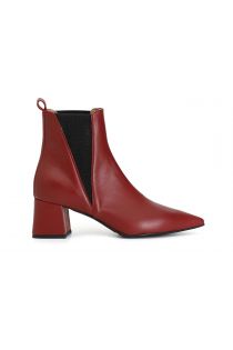 Women's nappa leather ankle boot with a 50 mm high heel and side stretch panel. the insole is leather.