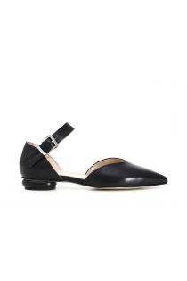 Nappa ballet flats with tapered toe and ankle strap. Low heel covered with the same material as the upper
