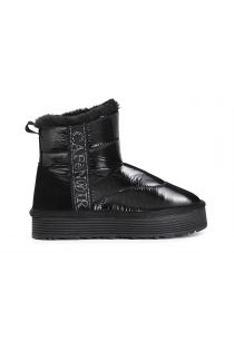 Nylon ankle boot embellished with a cafènoir logo ribbon made of rhinestones the lining is faux fur. 35mm high platform