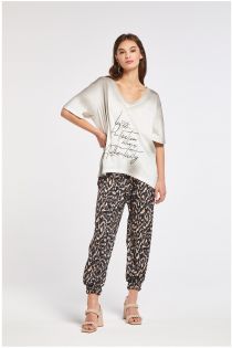 Cotton jersey v-neck t-shirt with ombré airbrush pattern