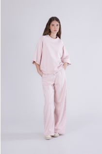 oversized short-sleeved sweatshirt with applications pink
