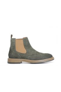 Men's oxford-style split leather ankle boot. beige footwear with side stretch panels. casual and versatile style perfect with any look. the insole is leather.