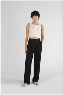 Palazzo trousers with pleats on the front in fluid and drooping fabric. button and hidden zip closure. to be combined with its matching jacket. perfect piece that adds a touch of style to your summer wardrobe.