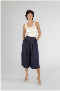 Stretch poplin trousers. the waist is elasticated and there are maxi pleats in the front that create modern volumes. model that gives personality to every outfit perfect with a shirt or a t-shirt worn with a pair of sneakers for a more casual and casual look or with a flat sandal for a more elegant look!