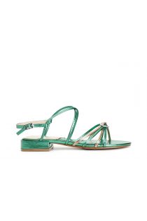 patent-effect double-crossover sandals with accessory emerald