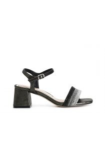 Patent-effect gilda sandals with rhinestone front bands. the padded genuine leather insole makes the shoe comfortable even after several hours of use. the heel is 50mm.