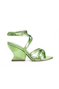 patent-effect gladiator sandals green