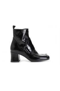 Women's patent leather ankle boot with ornamental stitching on the upper. the very chic style allows you to wear it with any outfit for any day or evening occasion. the toe and heel are squared.