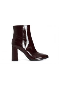 Women's patent leather ankle boot. zipper on the inside. 88 mm square heel. the insole is in leather. very versatile and chic shoe to interpret office and leisure looks with style.