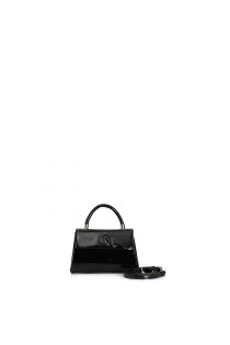 Rigid patent-effect mini-bag with handle and flap. cafènoir logo matching the bag. magnetic closure. bag with shoulder strap.