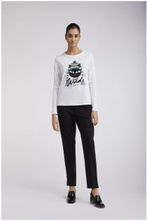 Long-sleeved t-shirt in 100% cotton jersey reproducing the cute cat noir in peruvian version.
