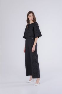 poplin trousers with san gallo side band black