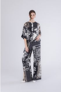 Elegant blouse in printed viscose satin with a flowing and lightweight design. chain detail on the sleeves adds character and style. perfect for refined day and evening looks. the model is 171 cm tall and wears size s. fit: regular.