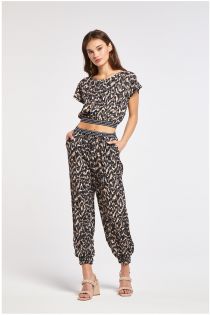 printed jersey trousers with cuff at the hem multi beige camouflage