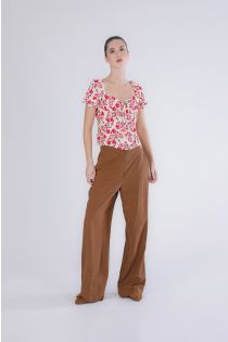 Feminine viscose top with a floral print short puff sleeves and a shaped neckline. the smocked elastic back enhances the silhouette offering comfort and style ideal for chic summer looks. the model is 175 cm tall and wears a size s. fit: regular.