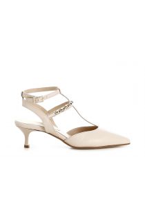 pumps with cage around the ankle and decorative chain beige