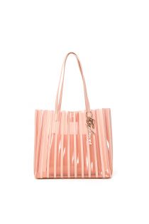 Shopping bag with a summery vibe, alternating faux leather and PVC in the same colour. A range of bright colours to choose from.