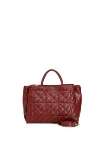 Bowling hand bag that comes with optional shoulder strap, embellished by geometric quilting and metal CafèNoir plate