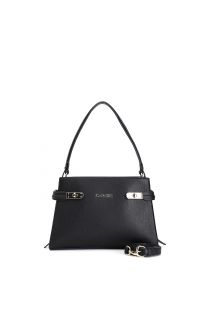 Bag in tumbled effect material and metal closures. bag equipped with optional shoulder strap.