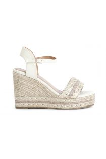 Raffia gilda model sandals with micro-rhinestone insert. cord wedge embellished with a micro-rhinestone strap.