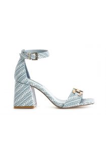 Raffia print sandals with closed reinforced heel and gold accessory. leather insole. 70 mm-high heel.