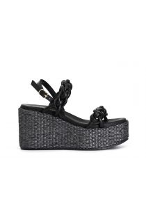 raffia wedge fisherman sandals black