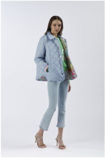 Long-sleeved diamond-quilted down jacket made of an impalpable nylon with a matt finish. the garment is reversible: on one side a solid colour and on the other an iconic floral print from the summer collection