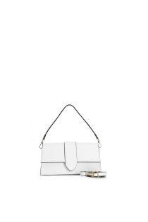 Rigid hammered leather mini-bag with flap. bag with shoulder strap.