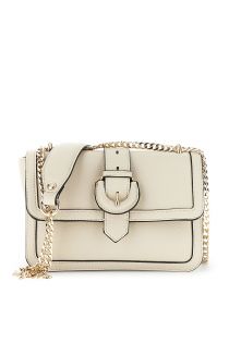 Rigid faux leather shoulder bag with flap. Chain shoulder strap with shoulder pad for elegant and comfortable fit.
