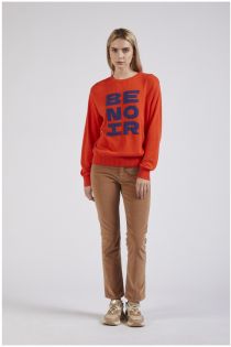 Crew-neck sweater made of a warm and soft angora-blend yarn. the shirt reproduces our slogan 'be noir' in a contrasting colour. a delicate line of rhinestones frames the lettering.