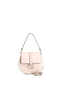 Smooth leather round shoulder bag with accessory. bag to be carried by hand or with shoulder strap. zip closure.