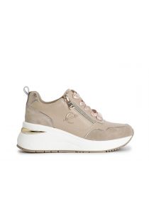 Women's running shoes in coated leather with suede inserts and ornamental side zip. internal footbed.