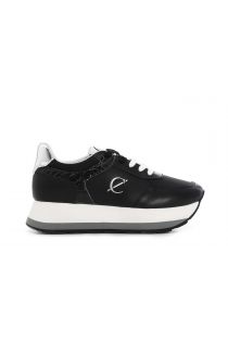 Women's sneakers with laced running sole. shoe in coated leather and fabric with shimmer effect inserts. side silver logo with cafènoir monogram. sole height 30 mm. internal footbed.