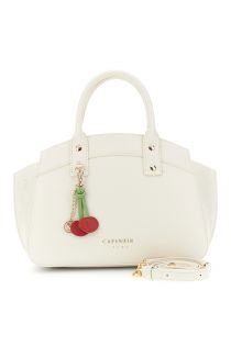 saffiano effect handbag with charm ivory