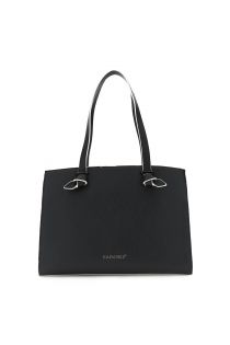 saffiano-effect shopping bag with knotted handles and metal loop black