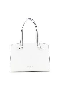 saffiano-effect shopping bag with knotted handles and metal loop white