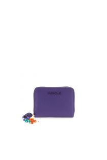 Saffiano-effect zip-around wallet with matching logo and multicolor charms.