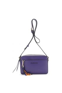 Saffiano leather-look camera bag with a flat front pocket, tone-on-tone logo, and multicolored cord charm. Slim, adjustable shoulder strap for a practical look.
