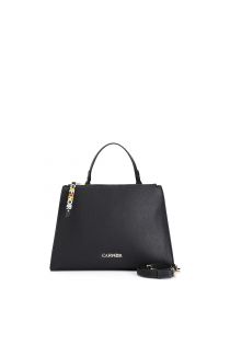 Shopping bag with a rigid saffiano structure. zip puller with personalized and colorful letters. bag with double zip and equipped with multiple compartments. single handle and adjustable shoulder strap.