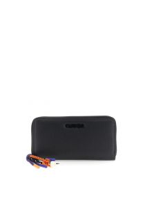Saffiano-effect zip-around wallet with matching logo and multicolor charms.